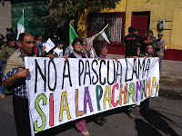 El representante de los campesinos dijo que “esta manifestación en contra de la Barrick debe estar ligada a la lucha Mapuche y de los pueblos indígenas por la autodeterminación de los pueblos. También se debe ligar a los deudores habitacionales, a los pobres, a la discriminación social y económica. Debe vincularse a la acción y movilización de los trabajadores. Nosotros queremos estar ligados a los trabajadores forestales, los de Arauco que nos dieron un ejemplo con su gran lucha”, donde recordó al “mártir” Rodrigo Cisternas, quien murió baleado por las fuerzas especiales en las protestas sindicales contra la Forestal Arauco, en la octava Región.